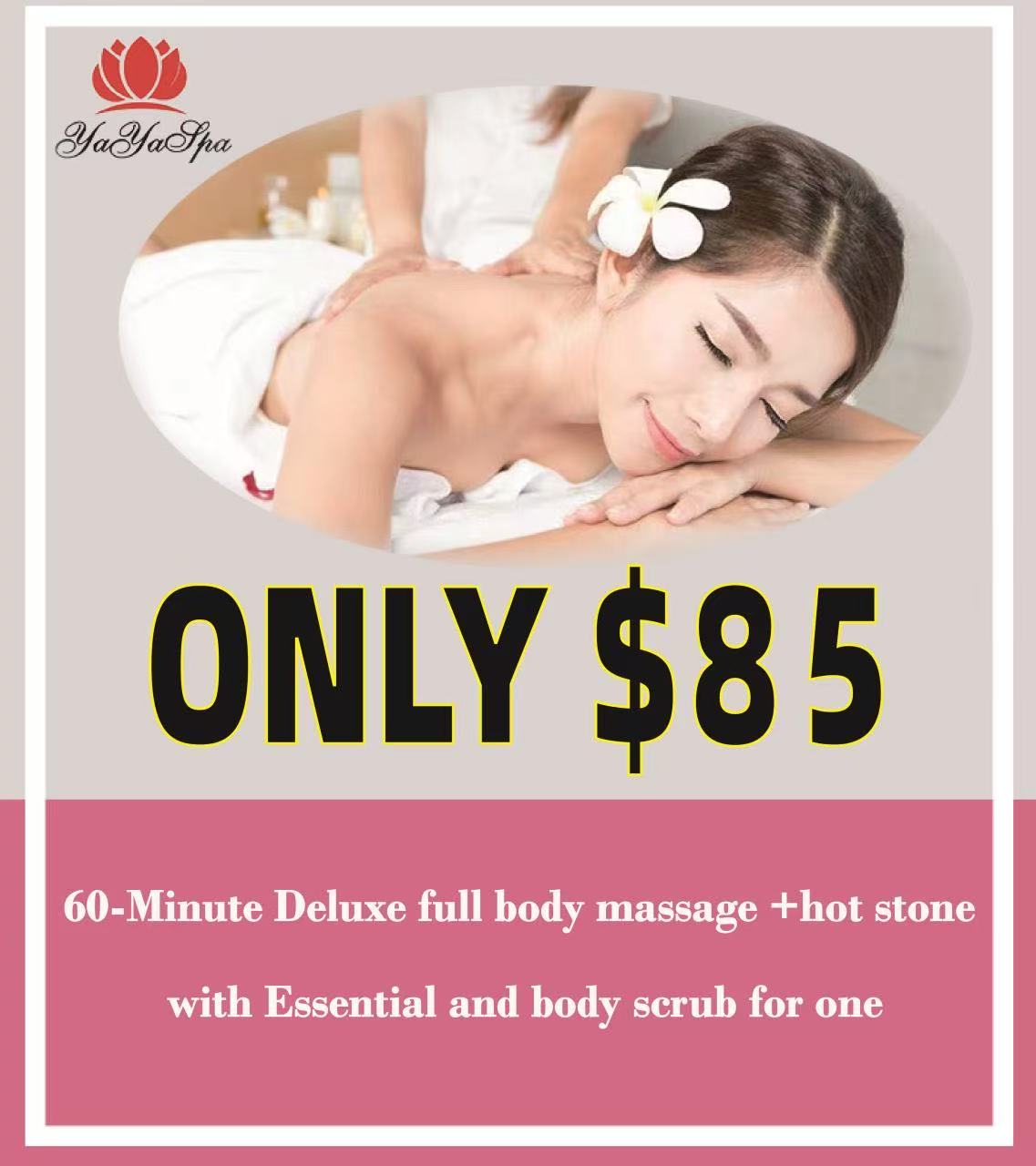 *60-Minute Deluxe full body massage +hot stone with