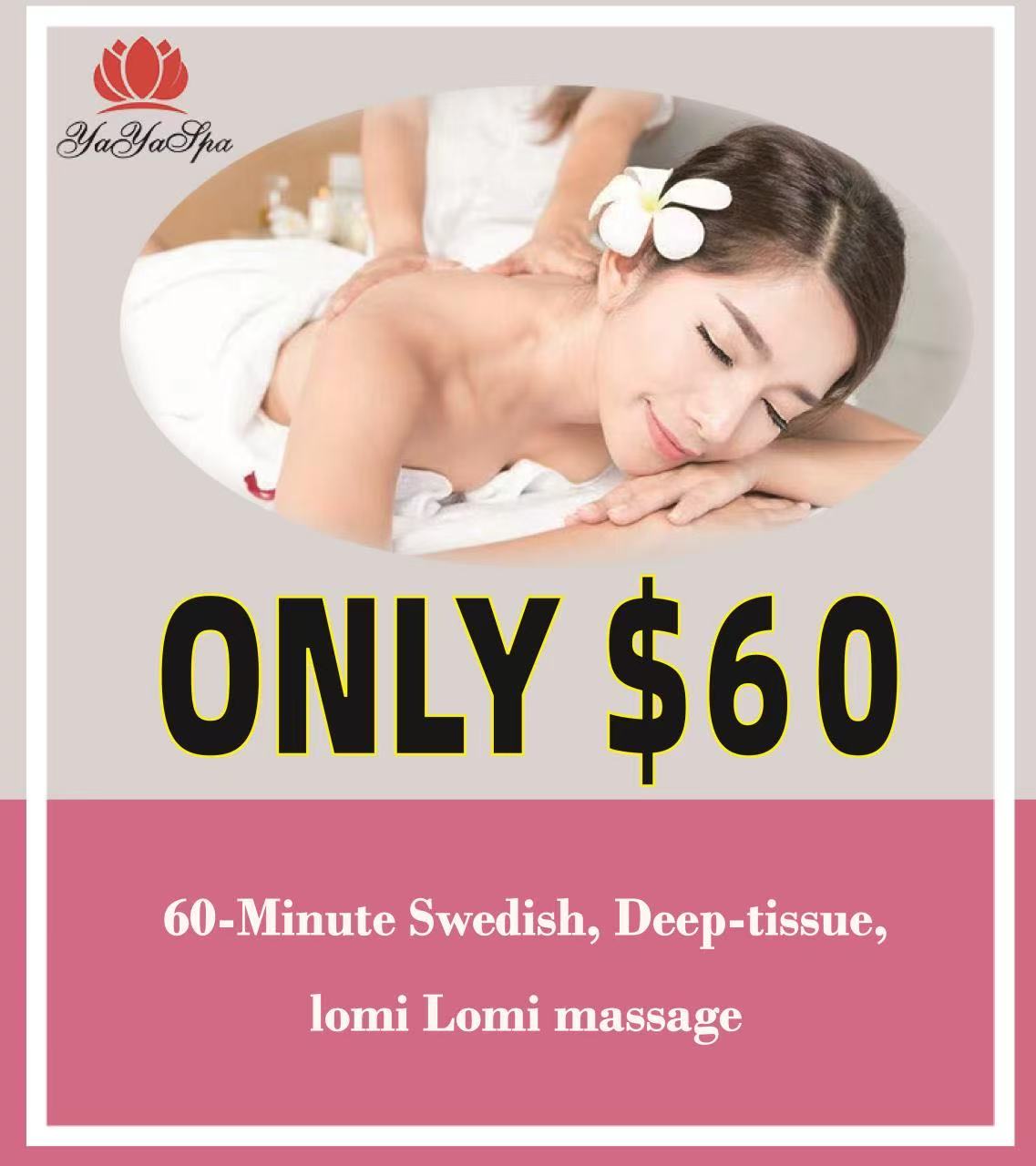 *60-Minute Swedish, Deep-tissue,lomi Lomi massage