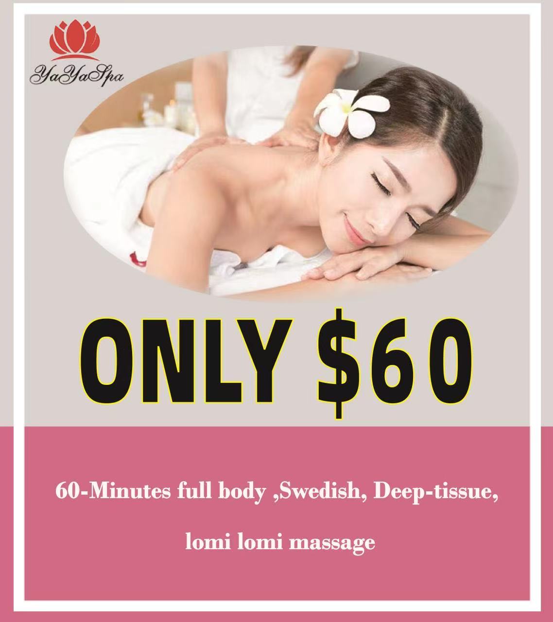 60-Minutes full body ,Swedish, Deep-tissue,lomi lo