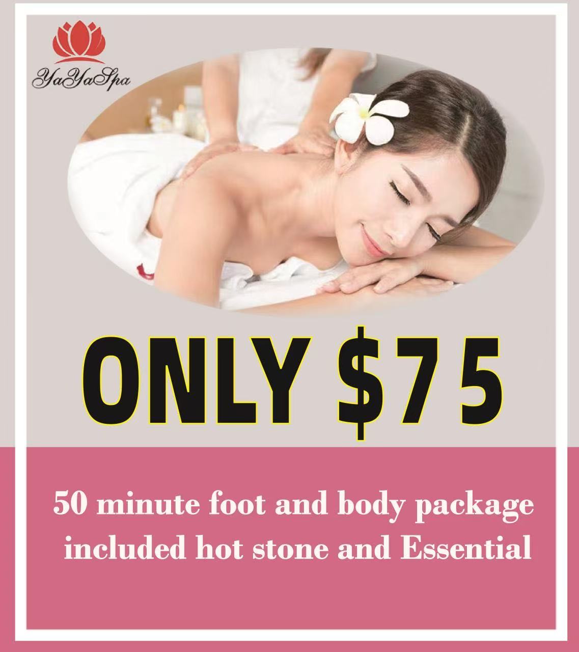 50 minute foot and body package included hot stone