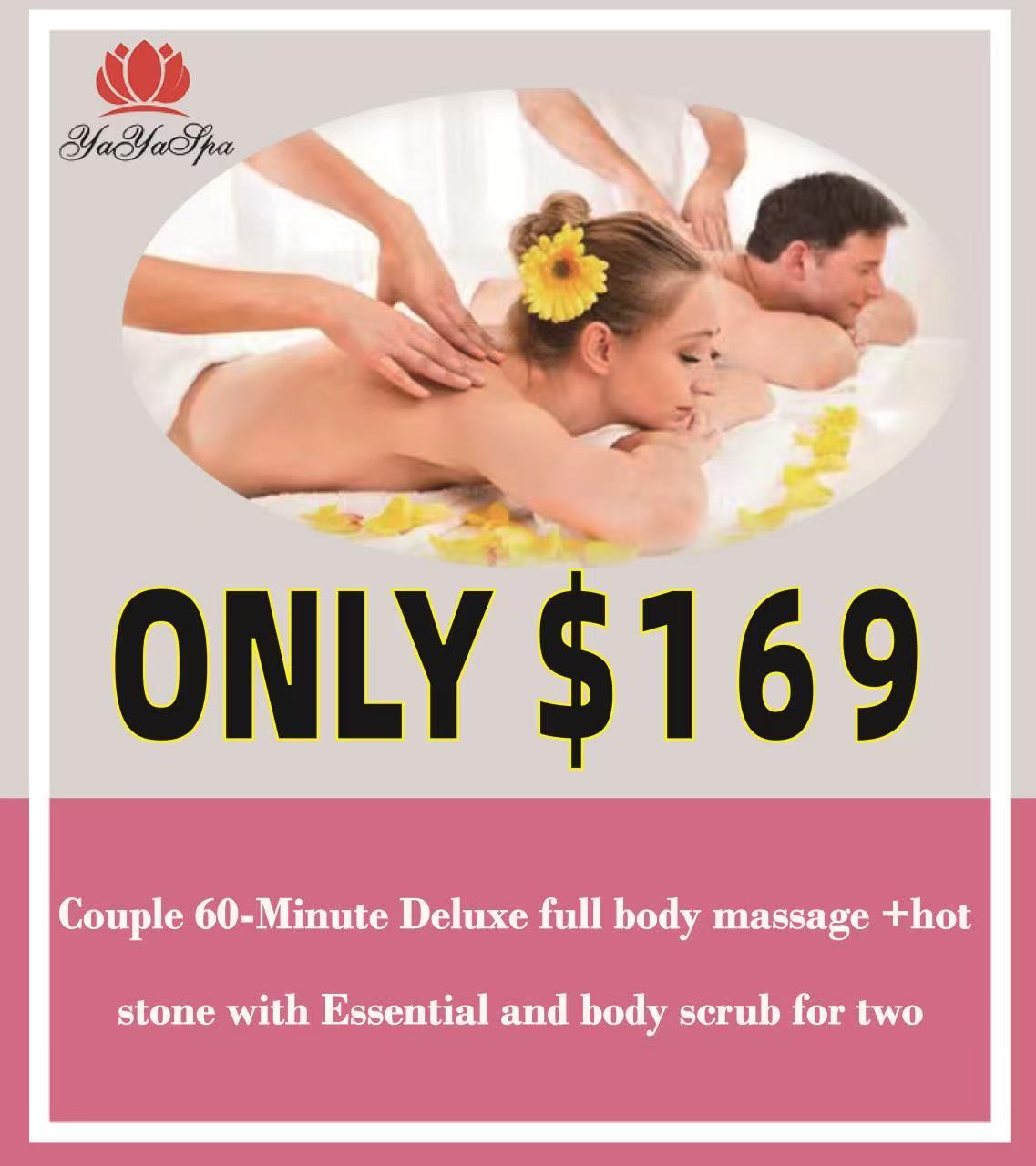 *Couple 60-Minute Deluxe full body massage + hot st