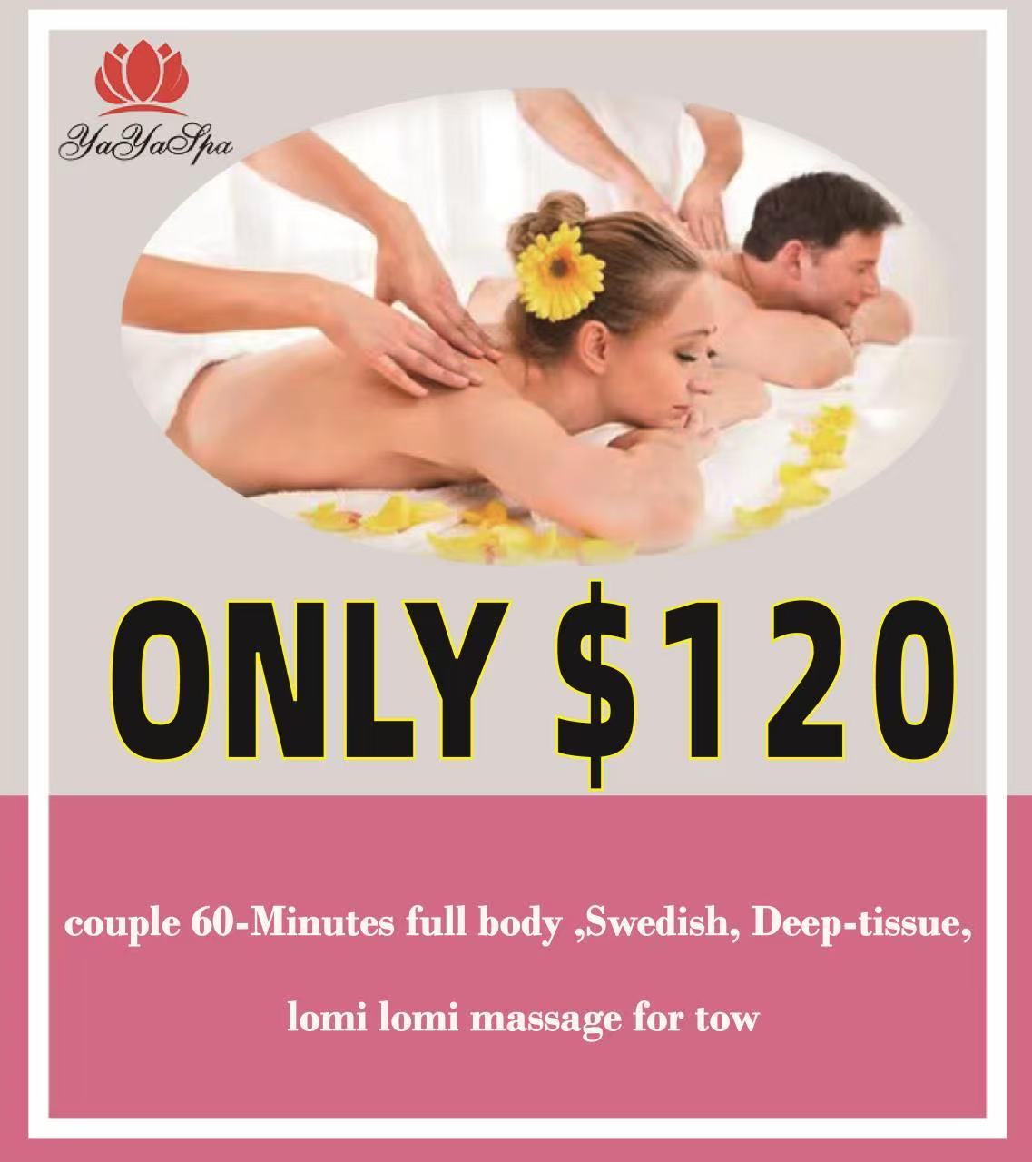 Couple 60-Minutes full body ,Swedish, Deep-tissue,